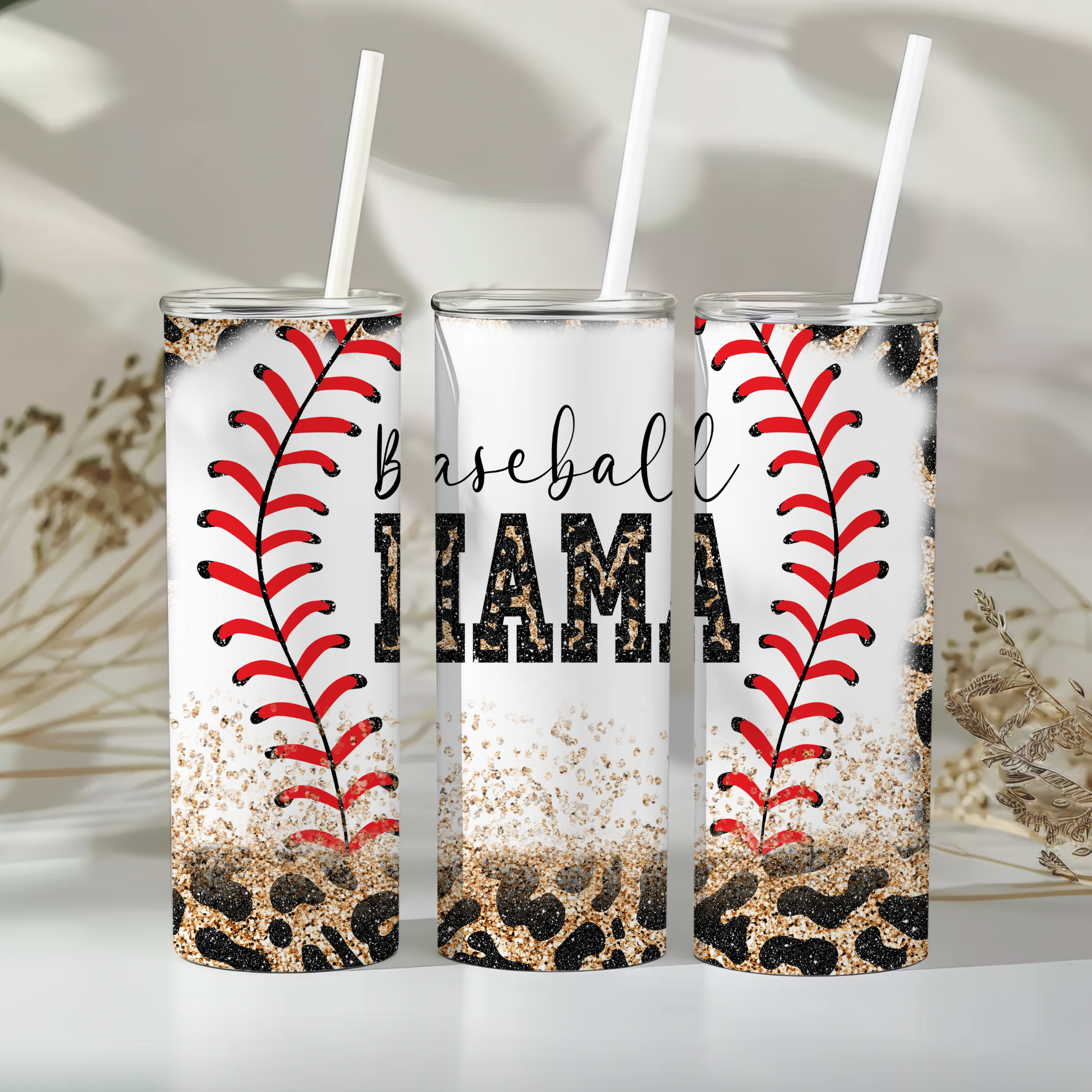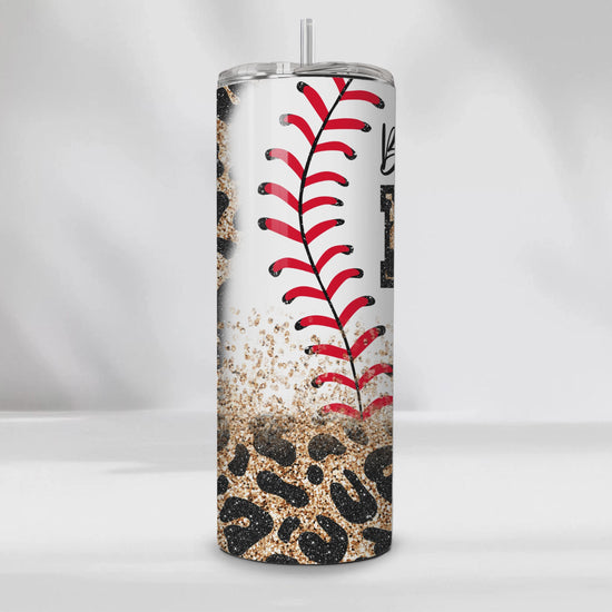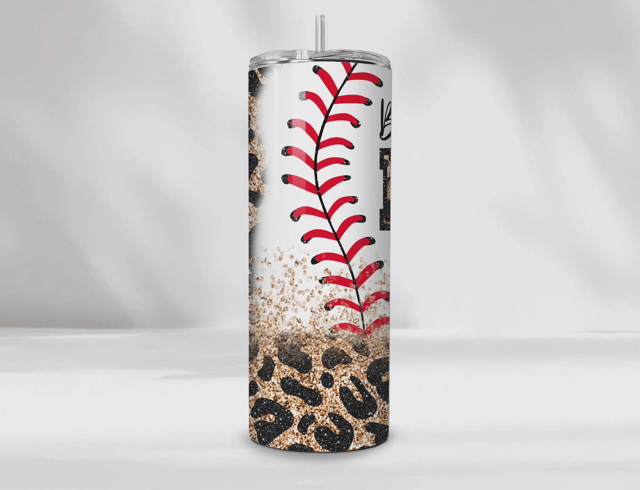 Baseball Mama 20 oz Tumbler – Glitter Leopard Print Baseball Stitch Cup