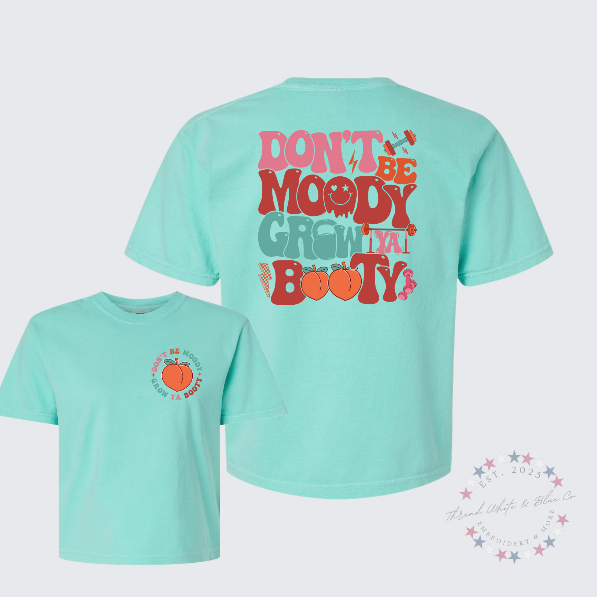 Turn heads at the gym or on the street with our Don't Be Moody, Grow Your Booty T-Shirt – the perfect mix of sass, strength, and self-love. Designed for fitness enthusiasts and booty-building queens, this comfy, breathable tee keeps you motivated while showing off your personality.