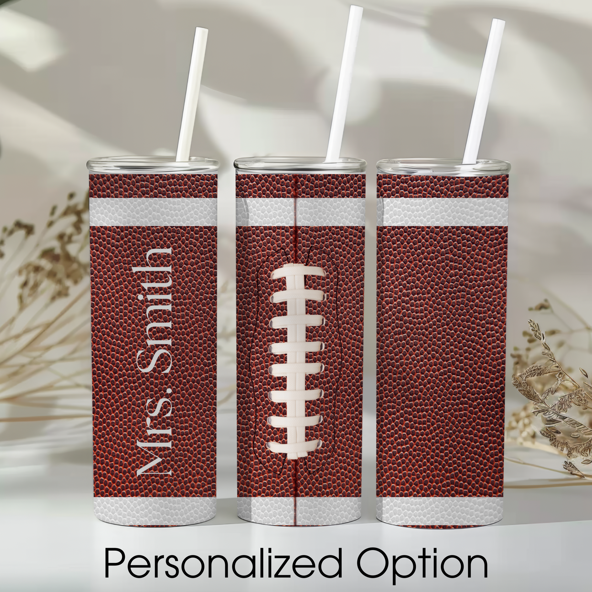 Football 20 oz Tumbler with Lid & Straw – Personalized Option