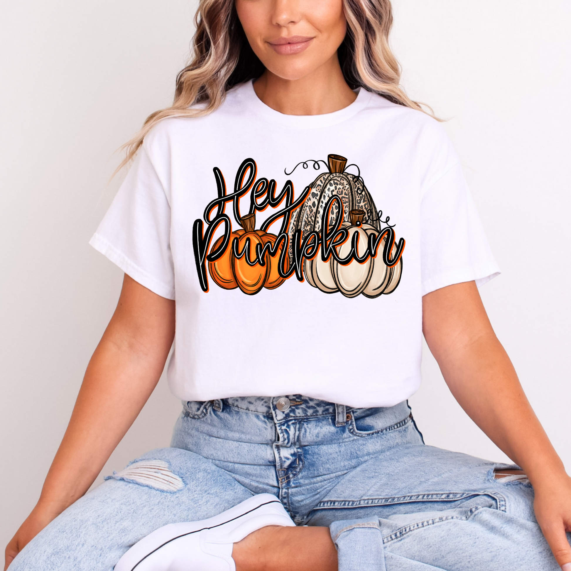From crisp leaves to cozy vibes, this "Hey Pumpkin" T-shirt is everything fall lovers need in their wardrobe. Grab yours now and make every autumn day a little sweeter!