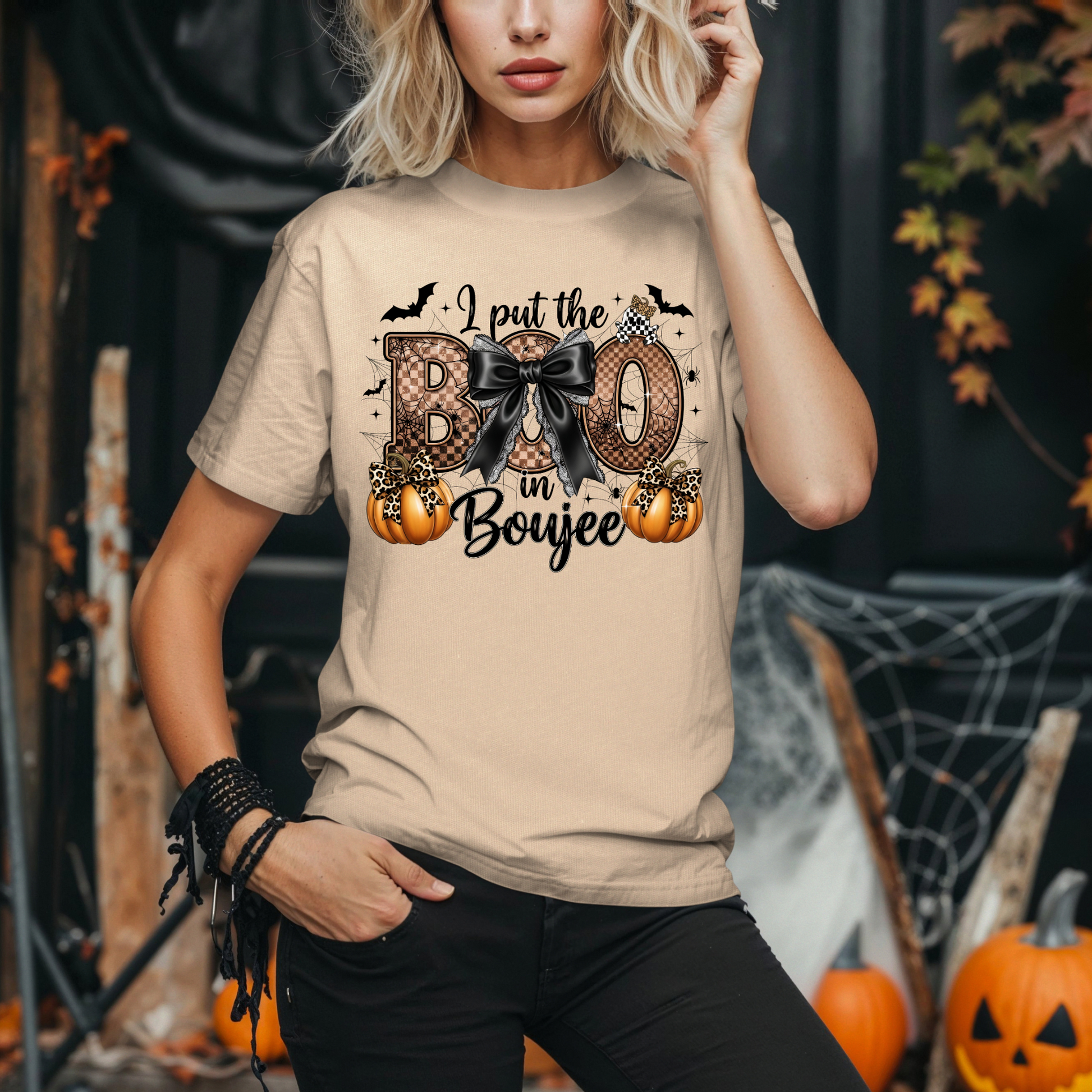 Turn heads this Halloween with our "I Put the Boo in Boujee" T-Shirt – the perfect mix of spooky and stylish! Designed for those who love ghostly vibes and glam life, this trendy Halloween tee brings the sass to spooky season. Featuring playful fonts, fun graphics (like ghosts, bats, or sparkles), and available in festive colors, it’s a must-have for your October wardrobe.