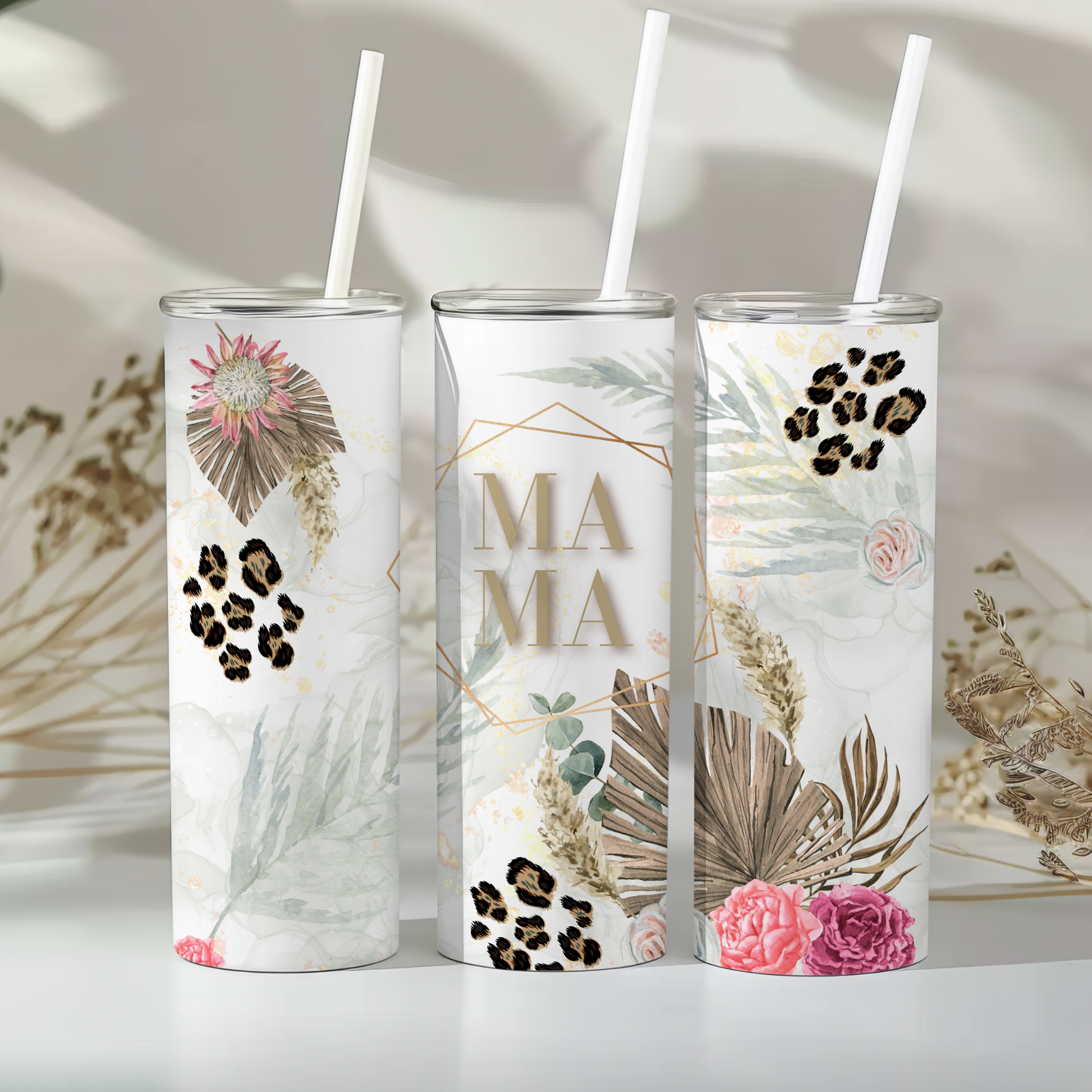 Mama 20 oz Tumbler – Floral Leopard Print | Boho Chic Gift for Moms