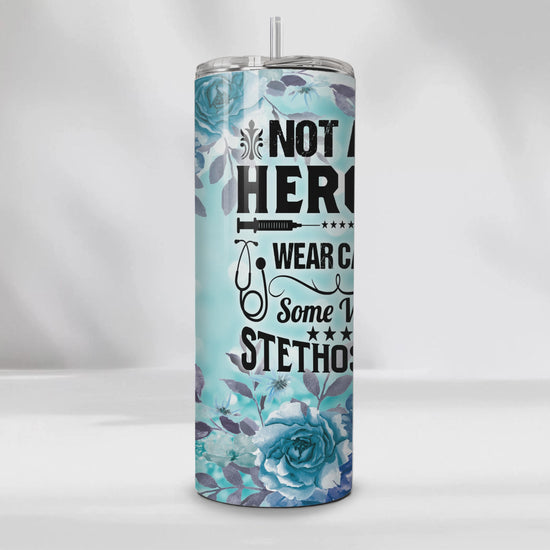 Nurse 20 oz Tumbler – “Not All Heroes Wear Capes” | Floral Scrub Life Design for Healthcare Workers