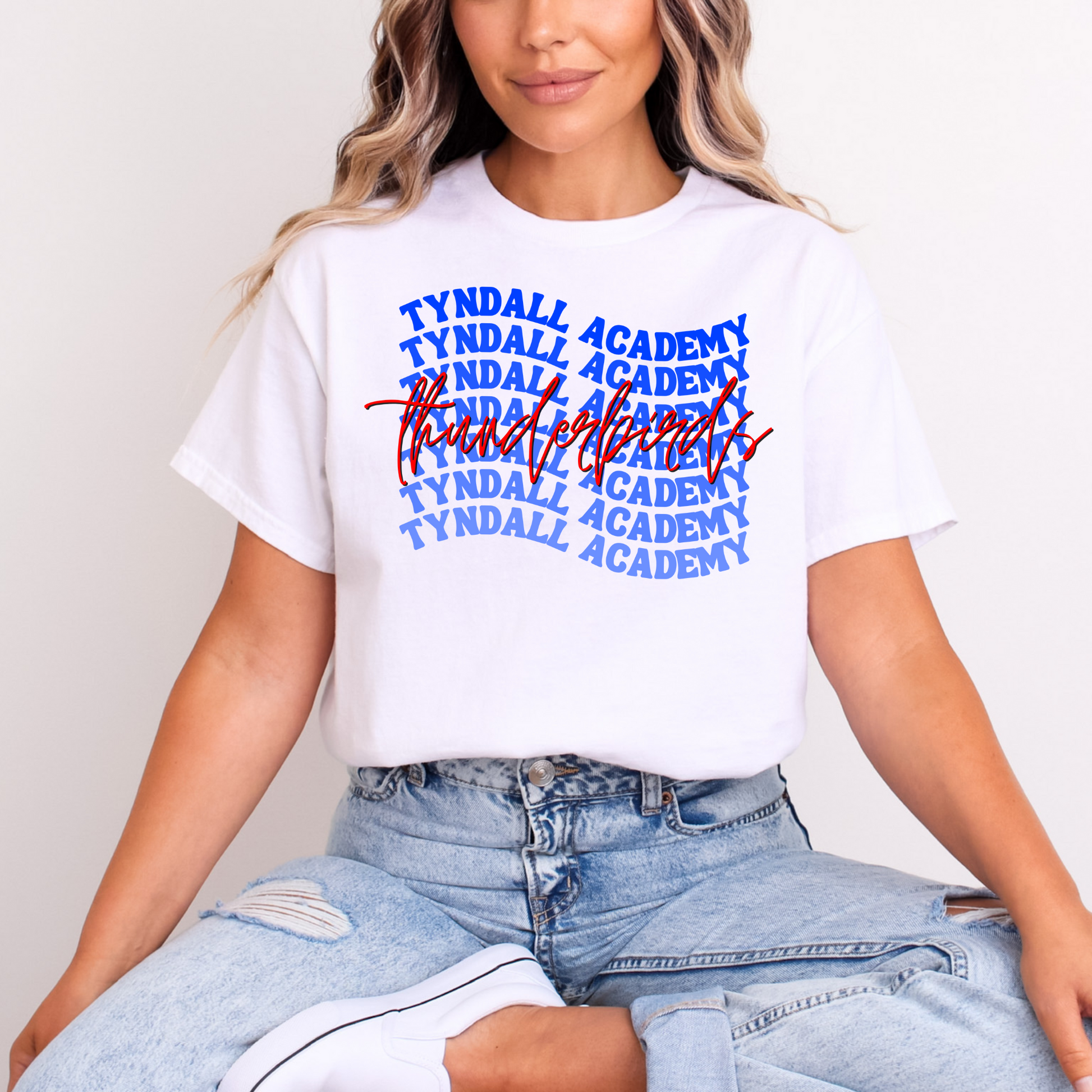 Show your Thunderbird pride in bold fashion with our Stacked Tyndall Academy Thunderbirds T-Shirt! Featuring a modern stacked text design that highlights "Tyndall Academy Thunderbirds" in strong, eye-catching typography, this shirt is perfect for students, teachers, athletes, and fans who want to represent their school with style.