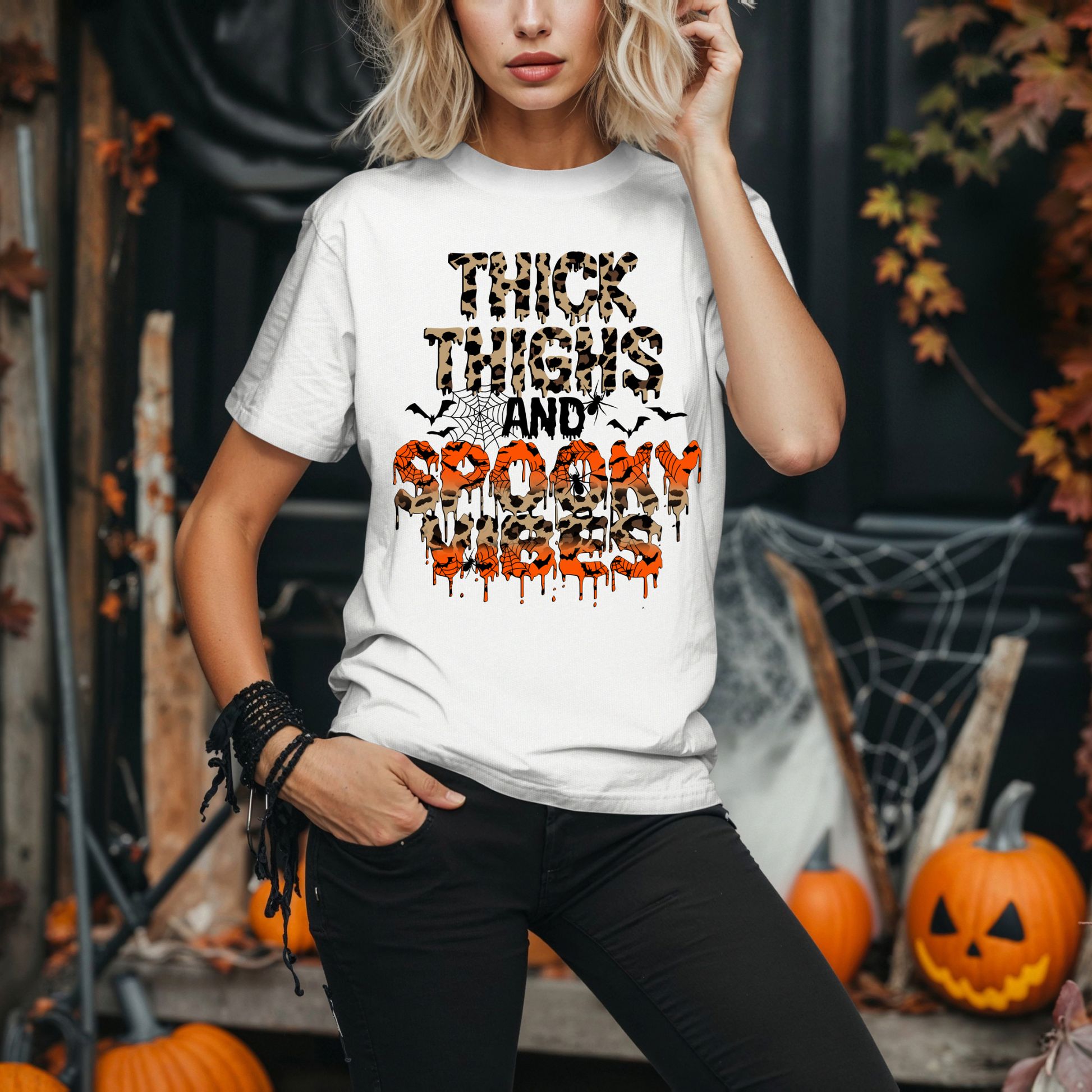 Embrace your curves and your love for all things eerie with our Thick Thighs and Spooky Vibes T-Shirt! Perfect for Halloween season or year-round witchy vibes, this soft, breathable tee is designed for comfort and confidence. Featuring bold, eye-catching graphics, it’s the ideal mix of body positivity and gothic charm.