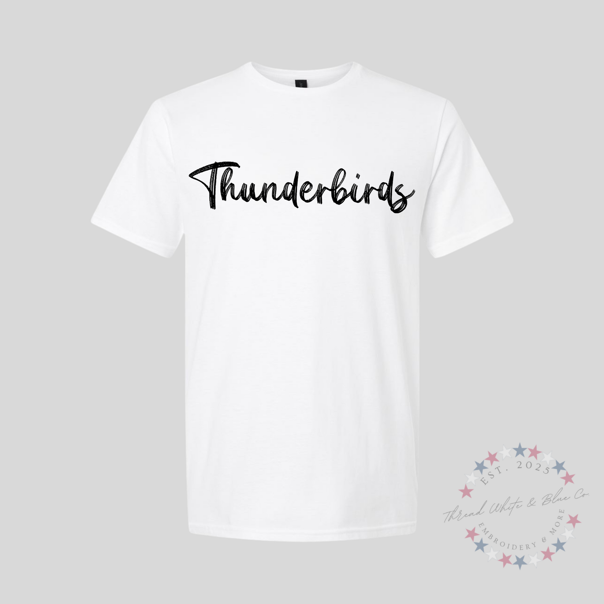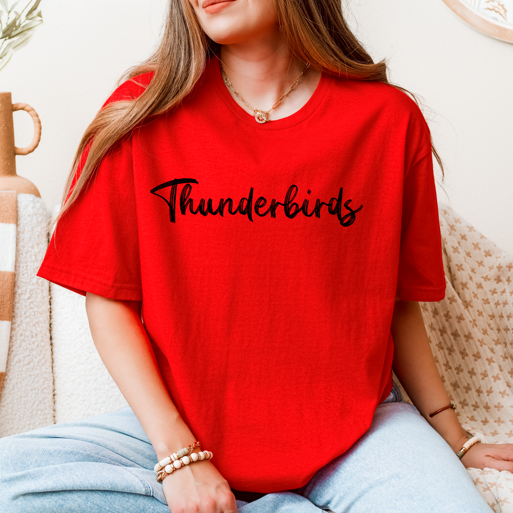 Made from soft, breathable fabric and available in youth and adult sizes, it’s designed for comfort, durability, and pride. Whether you're cheering from the stands or leading in the classroom, show everyone what it means to be a Thunderbird!
